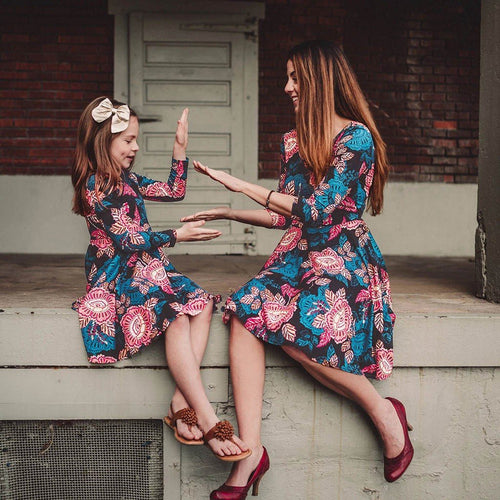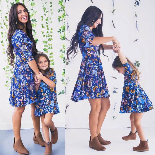 Mom&Me Lady Three Quarter Floral Print Dress Family Outfits Clothes