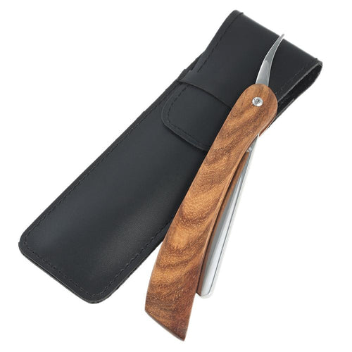 Straight Shaving Razor Stainless Steel Barber Shaving Folding Razor Wooden Handle Razor with Leather Sheath