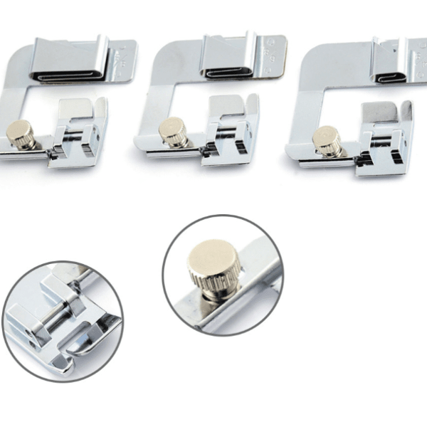 A narrow rolled hem that is even and smooth is a sure sign of a well-made project. Sometimes it can be a challenge! But you don't have to worry about it anymore. With the help of Magic Hemmer Foot, everything will be easy as pie!The SEWDOMUS - Magic Hemmer Foot is just another amazing little device that makes my sewing life a million times easier. Using this sewing machine attachment makes hemming sheer and slippery fabrics an absolute breeze.This includes three hemmers that all screw onto the included snap-on presser foot. Simply pre-press the start of the hem, pressing under twice the width of the hem and feed it into the guide. The guide on the hemmer turns under the raw edge and allows it to be easily stitched into place, giving you professional looking turned hems on most medium to heavy weight fabrics.