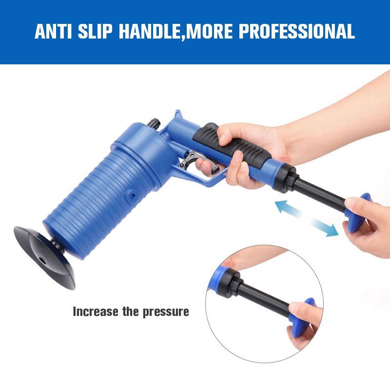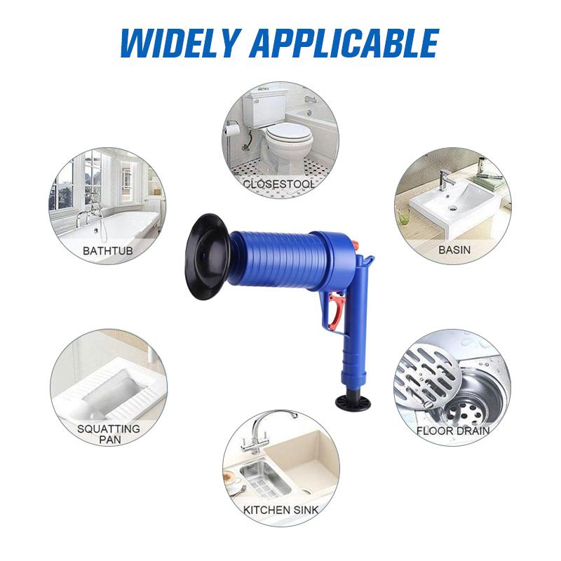 It can deal with various blockages caused by all sorts of rubbish such as hair, cloth, tea, leaves, grease,oil dirties and so on.With high pressure air power, it clears drains quickly and easily.Perfect for works on sinks, tubs and toilets.