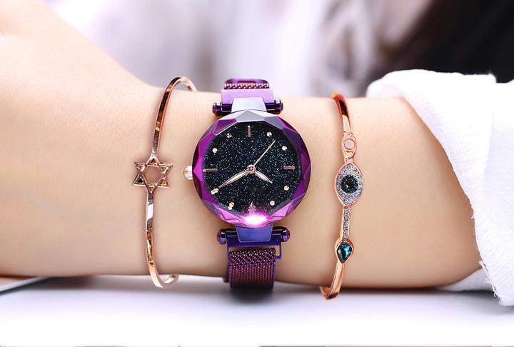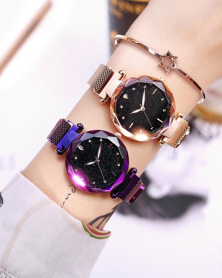 A classic look, this fashion quartz wrist watch is specially designed with a magnetic band. The fashionable particular starry sky design makes it stunning.