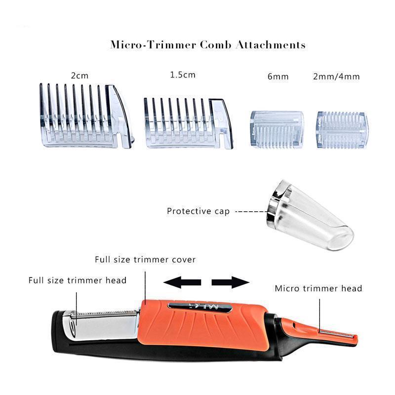 Each end is equipped with two different sizes of comb attachment(2mm/4mm, 6mm, 1.5cm, 2.0cm), convenient for you to control the length of the hair.