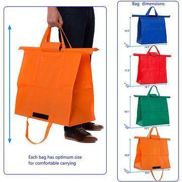 • Get rid of plastic bags for food: Reusable Eco-friendly set of shopping cart trolley bags offers instant organization, as soon as you pop them into your cart. Four bags are all you need to store all of your Grocery shopping!