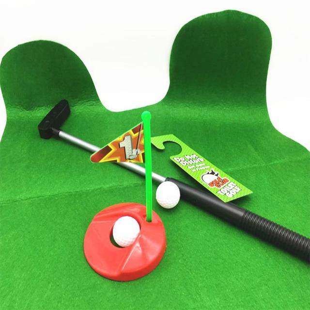 Included: Four-piece set includes toilet wraparound golf green, putter, golf ball, and golf hole with festive flag